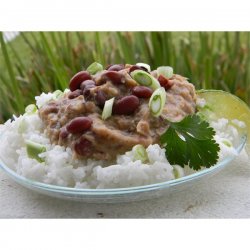 "Believe it or not the secret to many bean dishes is lard. Red beans are simmered, slowly, with ham hock. Then the beans and meat are processed in a food processor with spices and lard. The beans are reheated and served over rice."