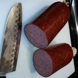 1Stir together the curing mixture, sugar, MSG, mace, mustard, ground pepper, pepper flakes, and garlic powder. Sprinkle over venison in a large mixing tub. Mix the spices into the meat, then pour in the liquid smoke. Mix together by hand for several minutes until very well combined. Place into a non-reactive (glass or plastic) container, cover, and refrigerate for 24 hours. Prepare casings according to note below, allow to soak overnight.