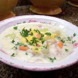 Add onions, potatoes, carrots, and celery. Boil until tender.