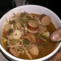 "This is one of my favorite gumbos I make. The combination of ingredients may sound strange, but they go together so well and it is so delicious. Serve over warm white rice."