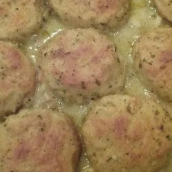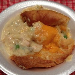 5Return to oven and bake until biscuits are done in the middle and the chicken mixture is bubbling, 25 to 30 more minutes.