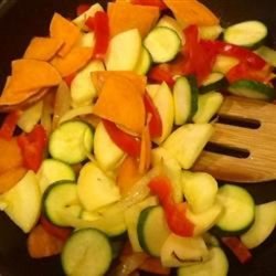 2Melt butter in a large skillet over medium heat; cook and stir yam and onion in the melted butter until lightly browned, 5 to 10 minutes. Mix zucchini, yellow squash, red bell pepper, green bell pepper, oregano, basil, salt, and black pepper into the yam mixture; cook and stir until vegetables are heated through and partially tender, 5 to 10 minutes.