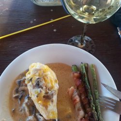 3When chicken breasts are done simmering, remove from the skillet and place in a 9x13 inch baking dish; save drippings. Combine remaining 2 tablespoons flour, 1/2 teaspoon salt and half-and-half. Mix together and stir mixture into reserved drippings in skillet. Bring to a simmer, stirring, and cook until thick and bubbly. Add mushrooms and lemon juice and stir together. Pour sauce over chicken and bake uncovered in the preheated oven for 30 minutes