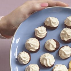 6Peel kisses from parchment paper. Dip the base of each kiss in melted chocolate and transfer to waxed paper-lined plate. Freeze kisses until chocolate hardens, 2 to 3 minutes.
