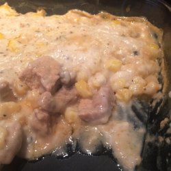 "My mom used to make this. I don't know where she got the recipe. My husband and kids don't like hominy (corn's big cousin) but they love this. Mom tried to make it several times, but every time she opened the can of hominy, there were pork and beans inside, so she would say 'Well kids, it's beans again tonight!'"