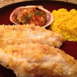3Place the fish fillets on a non-stick or parchment lined baking sheet. Brush the fillets evenly with the butter mixture and sprinkle the bread crumbs over the tops of each fillet.