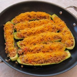 4Spoon egg mixture into zucchini shells. Sprinkle Cheddar cheese over egg mixture and cover skillet. Cook over low heat until cheese melts, about 2 minutes.
