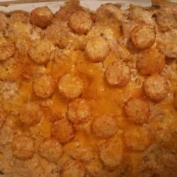 3Stir cream of mushroom soup, potato nuggets, and Cheddar cheese together in a large bowl until potato nuggets are evenly coated in soup and cheese. Spread potato nugget mixture over beef mixture.