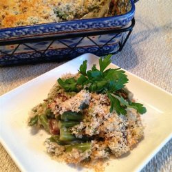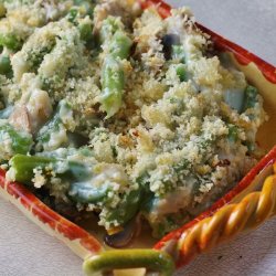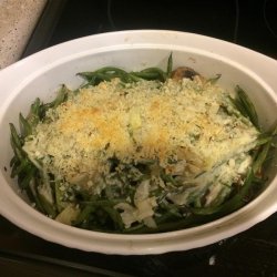 "This recipe calls for fresh green beans and mushrooms. Although a little more work than traditional green bean casseroles it is well worth the extra effort. It is also lower in fats and sodium as the fried onion rings are replaced by whole wheat topper. It is also great for people on diabetic diets. You can substitute wheat bread crumbs for the panko bread crumbs, if desired."
