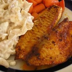 1In a small bowl or jar with a lid, make the spice blend. Mix together the paprika, onion powder, garlic powder, white pepper, black pepper, cayenne pepper, oregano, thyme, celery seed and kosher salt. Coat the fish fillets with the spice mixture, and allow to sit at room temperature for no longer than 30 minutes.