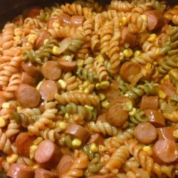 3Melt butter in a large skillet over medium heat; cook and stir onions until translucent, 8 to 10 minutes. Transfer onions to a large bowl and mix cooked rotini, tomato soup, hot dogs, corn with its juice, dill pickle relish, and yellow mustard into onions. Pour mixture into a baking dish.