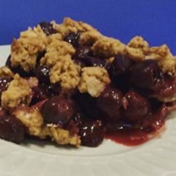 2In a medium bowl, cream together margarine, brown sugar and vanilla. Stir in oats, flour and water. Then press mixture into 9 inch pie pan. In a medium bowl, stir together the cherries and sugar. Pour into the crust.