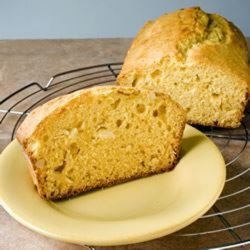 3In a large bowl, cream together shortening and sugar. Add eggs one at a time, and beat fill fluffy. Add flour mixture alternately with apricot puree to the creamed mixture. Stir in nuts. Spread batter into a greased and floured 9 x 5 loaf pan.
