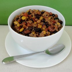 3Stir onion-garlic mixture into turkey mixture. Add chili beans, corn, black beans, water, diced tomatoes, and tomato paste; stir. Bring to a simmer, reduce heat to low, and simmer until flavors blend, 1 hour.