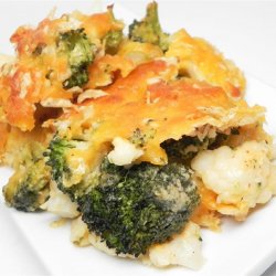 2Bring salted water to a boil in a saucepan. Cook cauliflower until easily pierced with a fork, about 5 minutes. Transfer cauliflower to a baking dish with slotted spoon. Cook broccoli until easily pierced with a fork, about 2 minutes. Transfer broccoli to baking dish with slotted spoon.