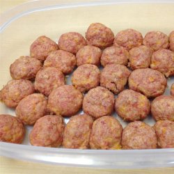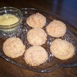 2Mix together the meat, Cheddar cheese, baking mix, water, and cayenne in a large bowl. Form the mix into 1-inch balls and place on a greased baking sheet.