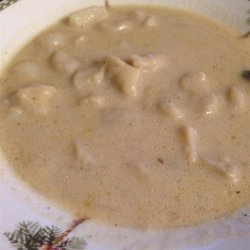 "This is not a soup for those watching calories! A German potato soup with small dough balls that I grew up with. It is rich, creamy, and will stick to your ribs. The women in the family have been making this soup for generations, and I've added my own twist to the base recipe."