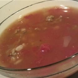 "This is a wonderfully easy soup made from leftover veggies. It fills the house with such a great aroma. We call it Potpourri Soup. You can try it with ground turkey instead of ground beef. If you do, replace one cup of the water with a small can of beef broth."