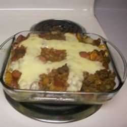 3Spread beef mixture into baked pie shell. Cut American cheese slices into strips, and make a lattice on top of pie.