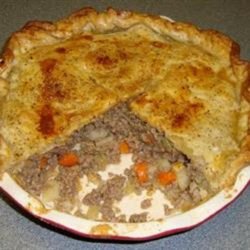"Beef and vegetables baked in a delicious pie. Great for dinner and excellent warmed-up the next day as well. Other vegetables can be interchanged like celery, peas, etc. Two pounds ground beef can be substituted for sirloin."
