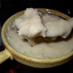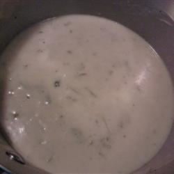 1In a large pot melt butter or margarine. Add flour and stir the resulting paste over medium heat. Add the milk and chicken broth and whip to eliminate any lumps. Bring to a boil and reduce heat to simmer.