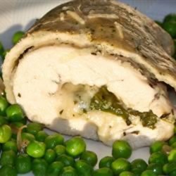 "The melted cheese in the center makes the dish. I made some brown rice and asparagus to go with it, and my family really enjoyed it. I hope yours does too! This makes 3 really large servings, or you can split it and make it into six smaller portions."