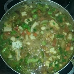 "This is a great tasting, simple to make soup. It consists of diced chicken breast with an array of mixed vegetables. It's relatively low in fat and high in taste."