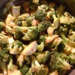 1Add oils to a small skillet on medium-high heat. Add broccoli and water chestnuts; stir-fry 3 minutes. In a small bowl, combine remaining ingredients. Add to broccoli; lower heat and cook until sauce is thickened, 2 minutes.