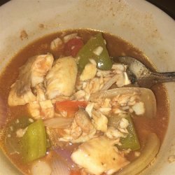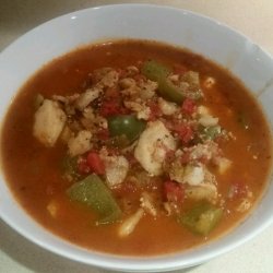 "A delicious fish soup that's low in fat! Having grown up on the Texas/Mexico border, I like foods spicy, but you can adjust the seasonings to taste. I also splash in a drop of hot pepper sauce in each bowl."