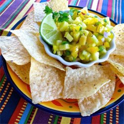 "A crunchy salsa comes together with diced mango, apple, cucumber, and yellow bell pepper. Toss with lime and orange juice, cilantro, and jalapeno for a tangy side dish."