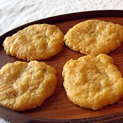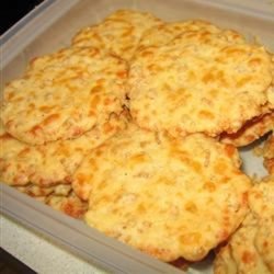 2In a large bowl, combine cheese, butter or margarine, flour, crispy rice cereal, salt, Worcestershire sauce, garlic powder, cayenne pepper, and black pepper. Mix well and form small balls out of the dough (the dough will yield approximately 55 balls). Flatten each ball of dough with your fingertips until the dough is very thin and arrange the discs on a cookie sheet.