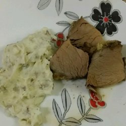 "This will melt in your mouth! This pork tenderloin soaks up the yummy juices as it cooks. Make sure to serve up the au jus on the side - its amazing! This recipe is so simple, you will love it!"