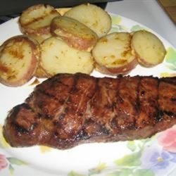 "I created this marinade on a whim one day and it was delicious! We usually use it on porterhouse steaks, but I'm sure it's interchangeable. This recipe is more than enough for two large steaks, but can be increased or decreased as needed."
