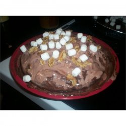 "Chocolate, caramel, nuts, marshmallows, cake. YUM! Hint: If you need to cover the cake with plastic wrap, insert toothpicks in the side and top of the cake. This will keep the plastic wrap away from the frosting."
