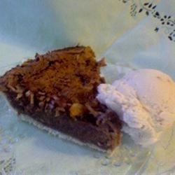 2In a large bowl combine the sugar, flour, cornstarch and cocoa. Add water and melted butter whisk until combined. Add the eggs one at a time, beating well after each one. Add the milk and beat until well blended. Stir in the coconut, pecans and vanilla. Pour batter into the pie shell.