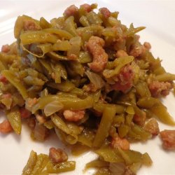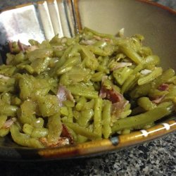 3Increase heat to medium-low. Stir cinnamon, salt, and nutmeg into the green beans. Cook the mixture until the onions are transparent but not yet soft, about 10 minutes.