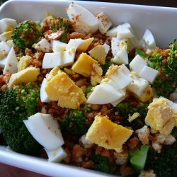 2In a small saucepan over medium heat, melt the butter; stir in bread crumbs and Parmesan cheese, and cook until the crumbs are golden brown, 1 to 2 minutes. Sprinkle the browned crumbs onto the steamed broccoli, and toss gently. Sprinkle the broccoli with chopped egg.