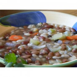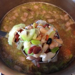 3Place drained beans in large pot. Add water to cover beans. Add bacon, onions, garlic, and celery. Cook until beans are tender (this takes a while...at least 1 1/2 hours). Add salt and pepper to taste.