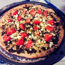 4Roll dough on a floured pizza pan and poke a few holes in it with a fork.