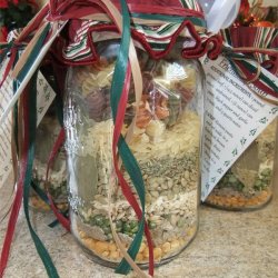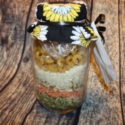1In a 1 1/2 pint jar, layer the split peas, bouillon, barley, lentils, onion flakes, Italian seasoning, rice, and bay leaves. Wrap the pasta in plastic wrap, and place in the jar. Seal tightly.