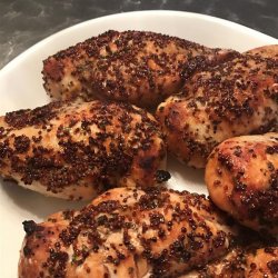 2Sprinkle chicken breasts with salt and pepper to taste, and place in a lightly greased 9x13 inch baking dish. In a small bowl, combine the honey, mustard, basil, paprika, and parsley. Mix well. Pour 1/2 of this mixture over the chicken, and brush to cover.
