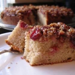 3In a large bowl, cream together the butter and 3/4 cup sugar until light and fluffy. Beat in the eggs one at a time, then stir in the vanilla. Beat in the flour mixture alternately with the sour cream. Pour batter into prepared pan.