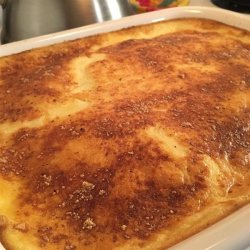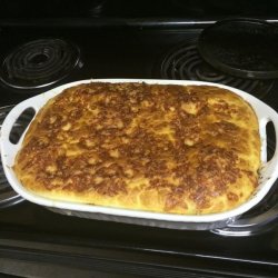 "Here is a great recipe for moussaka, a Greek dish. It includes sliced eggplant baked in a ground beef sauce and then smothered in a thin white sauce."