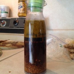 1In a 1 pint glass jar or larger, combine the garlic, ginger, olive oil, rice vinegar, soy sauce, honey, and water. Cover the jar with a tight fitting lid, and shake well. Remove lid, and heat jar in the microwave for 1 minute just to dissolve the honey. Let cool, and shake well before serving. Store covered in the refrigerator.