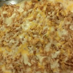 4Pour into greased 11x7 baking dish. Cover and bake for 25 minutes. Uncover, sprinkle with cheese and bake 5 to 10 minutes longer until cheese melts.
