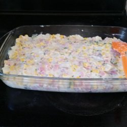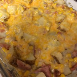 3Combine potatoes, ham, corn and parsley; set aside. In a saucepan saute onion in butter for 2 minutes, stir in flour until blended well. Gradually add milk and pepper. Bring to a boil. Cook and stir for 2 minutes. Remove from heat and pour over the ham mixture. Stir to mix well.