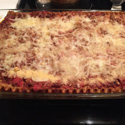 4Layer 1/3 of the lasagna noodles in the bottom of a 9x13 inch baking dish. Cover noodles with 1/2 ricotta mixture, 1/2 of the mozzarella cheese and 1/3 of the sauce. Repeat. Top with remaining noodles and sauce. Sprinkle additional Parmesan cheese over the top.