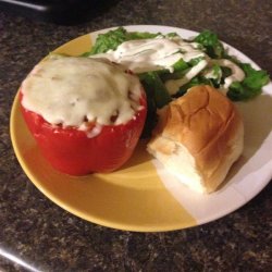6Sprinkle mozzarella cheese over the top of each stuffed pepper. Return to the oven and bake until cheese is lightly browned, about 5 to 10 minutes.