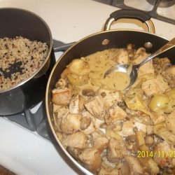 "Easy, moist, flavorful and aromatic -- the white wine, artichokes and mushrooms make this chicken dish the to way to any man's heart! Delicious served with buttered noodles and fresh greens."