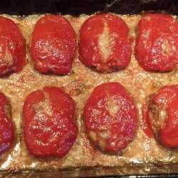 2In a large bowl, combine the egg, milk, cheese, oats and salt. Add the ground beef, mixing well, and form this mixture into eight miniature meatloaves. Place these in a lightly greased 9x13 inch baking dish.